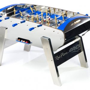 - La maison Equinox Exclusive est un fabricant français de mobilier et d’agencement spécialisé notamment dans les aménagements de yachts. Située dans le pays natais, non loin de Cholet, l’entreprise est connue pour son savoir-faire dans le travail de l’inox, et c’était un plaisir de collaborer avec les équipes pour créer un babyfoot tout en inox, aux allures futuristes.