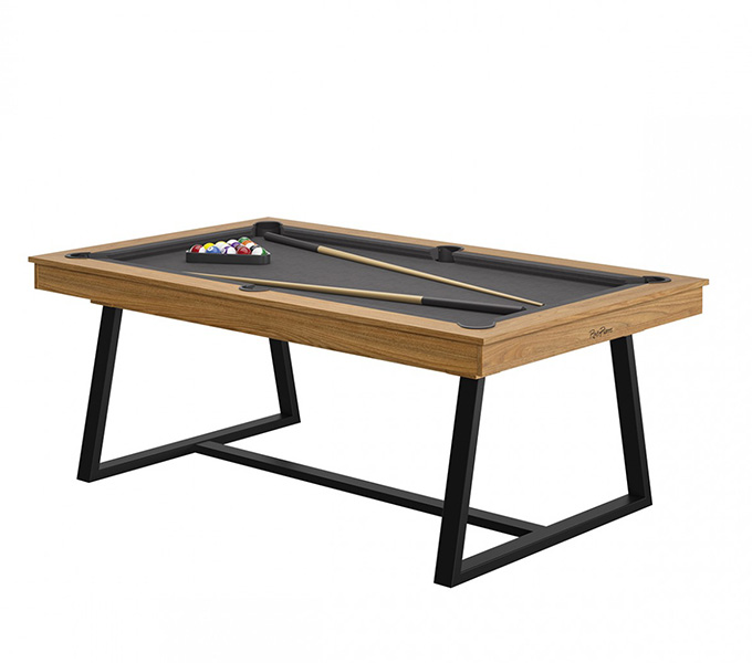 Chacun de nos billards loisirs se transforment en table de salle à manger avec notre option « plateau en deux parties ». Un gain de place essentiel pour pouvoir jouer dans tout type d’espace.